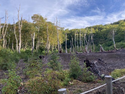歩くとすぐに木が枯れている空間に