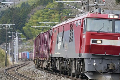 貨物列車の線路は雪だらけ