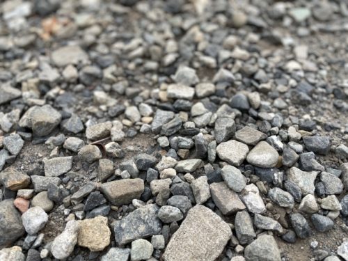 外の砂利道を裸足で歩いて